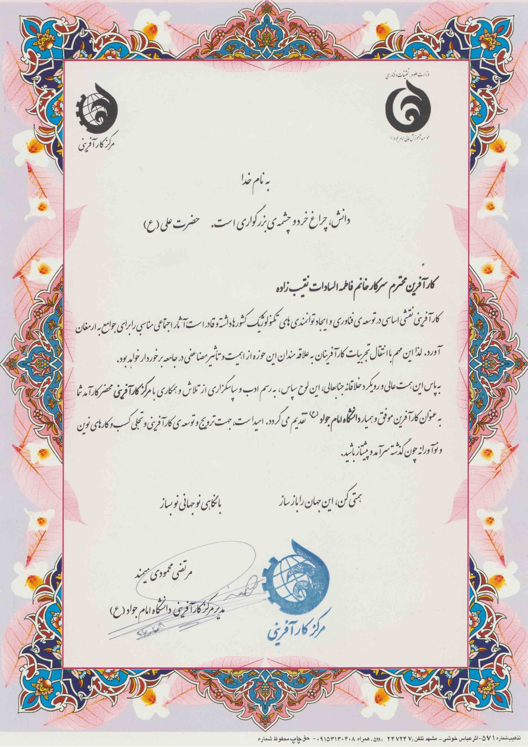تعدادی از دستاوردهای خانم فاطمه سادات نقیب زاده